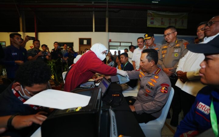 Momen Kapolri Ikut Donor Darah saat Hadiri Baksos HUT ke-53 Buruh KSPSI
