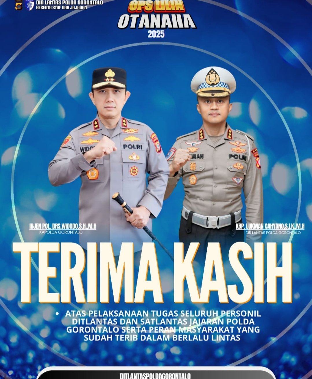 Gorontalo, radar91.com – Kapolda Gorontalo, Irjen Pol. Widodo, S.H., M.H., menyampaikan apresiasi dan terima kasih kepada seluruh personel Direktorat Lalu Lintas (Ditlantas) serta Satuan Lalu Lintas (Satlantas) jajaran atas dedikasi mereka dalam mengawal pelaksanaan Operasi Lilin Otanaha 2025. Hal tersebut disampaikan Kapolda pada Sabtu (03/01/2026).