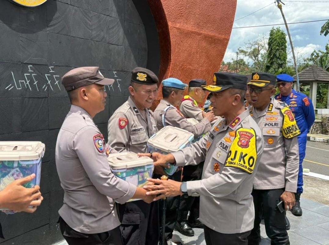 Selain itu, Kapolda Jabar menyerahkan tali asih berupa paket sembako kepada personel Polres Banjar sebagai bentuk dukungan dan apresiasi atas kerja keras anggota yang akan bertugas intensif selama pengamanan Natal dan Tahun Baru.