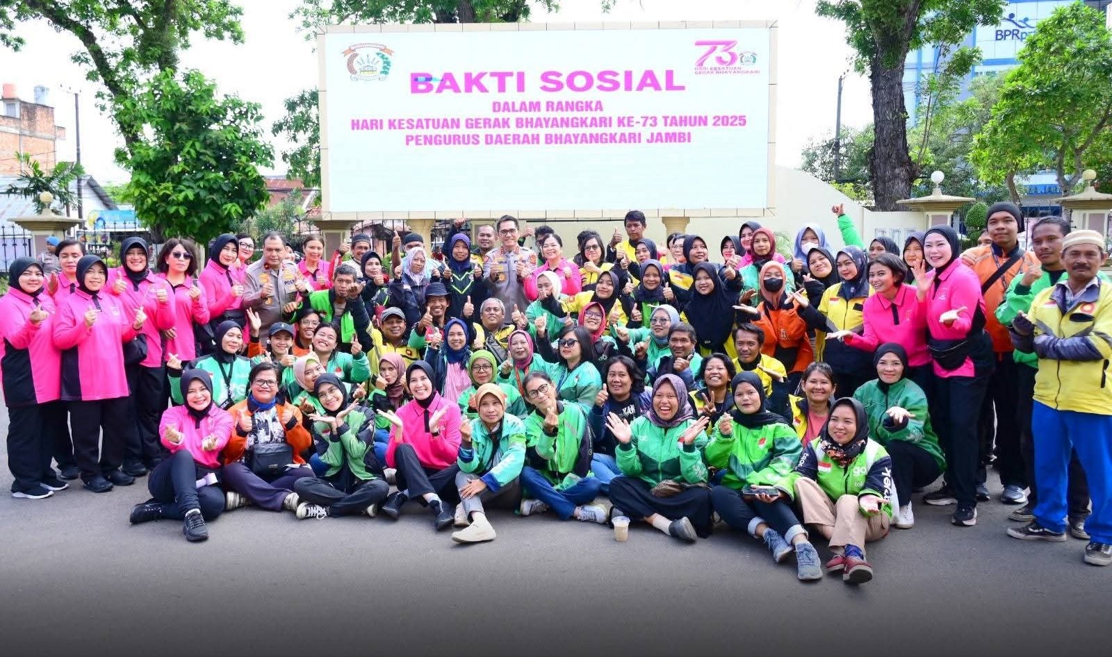 Jambi, radar91.com – Dalam rangka memperingati Hari Kesatuan Gerak Bhayangkari (HKGB) ke-73 Tahun 2025, Polda Jambi bersama Bhayangkari Daerah Jambi menggelar kegiatan Bakti Sosial (Baksos) bersama ojek online (Ojol) dan ojek pangkalan, Jumat (12/9/2025)