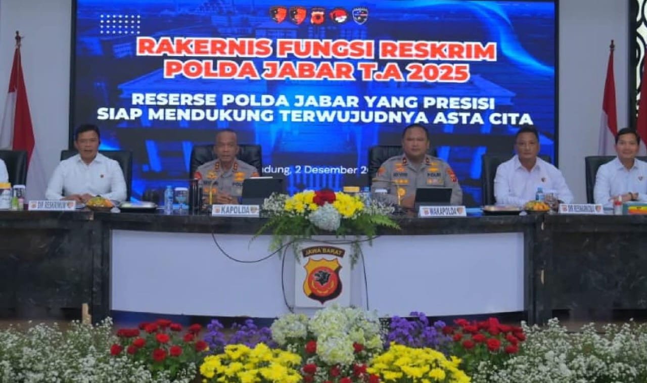 Bandung, radar91.com – Polda Jawa Barat melaksanakan Rapat Kerja Teknis (Rakernis) Fungsi Reserse Kriminal Tahun Anggaran 2025 pada Selasa, 02 Desember 2025, bertempat di Aula Dit Lantas Polda Jabar. Kegiatan ini dipimpin langsung oleh Kapolda Jawa Barat Irjen Pol. Rudi Setiawan, S.I.K., S.H., M.H., dan dihadiri para pejabat utama beserta jajaran penyidik dari Ditreskrimum, Ditreskrimsus, Ditresnarkoba, dan Ditresriber Polda Jabar.