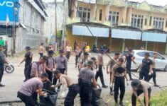 Polda Kalimantan Tengah Laksanakan Bakti Sosial Pembersihan Sampah di Pasar Besar Palangka Raya