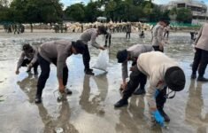 Bahu-Membahu Bersihkan Kawasan Pantai Kedonganan, Cara Polda Bali Jaga Ikon Wisata Kuliner