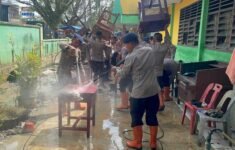 Brimob Polda Sumut Turun Tangan Bersihkan SMP Negeri 1 Tanjung Pura Pasca Banjir