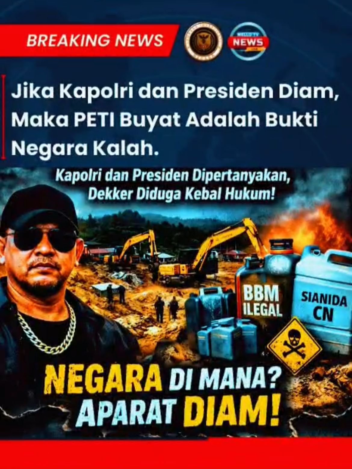 Menurutnya, masyarakat kerap melampiaskan kekecewaan kepada Kapolri dan Kapolda ketika menemukan aktivitas pertambangan ilegal dan pembalakan liar yang terus berlangsung. Padahal, akar persoalan berada pada kinerja jajaran teknis, khususnya Dirkrimsus, yang dinilai tidak optimal menjalankan fungsi penegakan hukum.