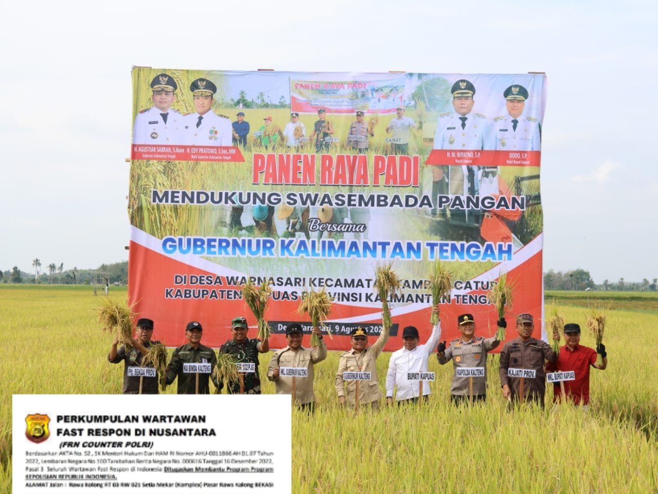 Palangka Raya, radar91.com – Kapolda Kalimantan Tengah (Kalteng), Irjen Pol Iwan Kurniawan bersama Gubernur H. Agustiar Sabran dan Forkopimda Kalteng melaksanakan panen raya padi, di Desa Warnasari, Kec. Tamban Catur, Kabupaten Kapuas, Sabtu (9/8/2025).