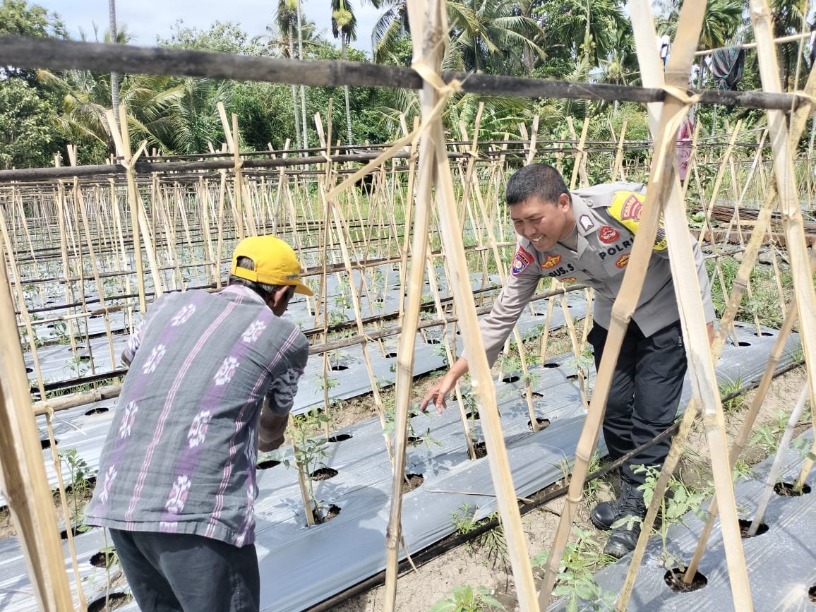Kegiatan yang berlangsung mulai pukul 11.20 WITA ini menyasar keluarga Amaq Ikhsan, salah satu petani di Dusun Tontong Suit, Desa Bagik Papan, Kecamatan Pringgabaya, Kabupaten Lombok Timur. Dalam kunjungannya, Bripka Agus Salim turun langsung ke sawah untuk mengecek kondisi tanaman tomat milik warga tersebut.