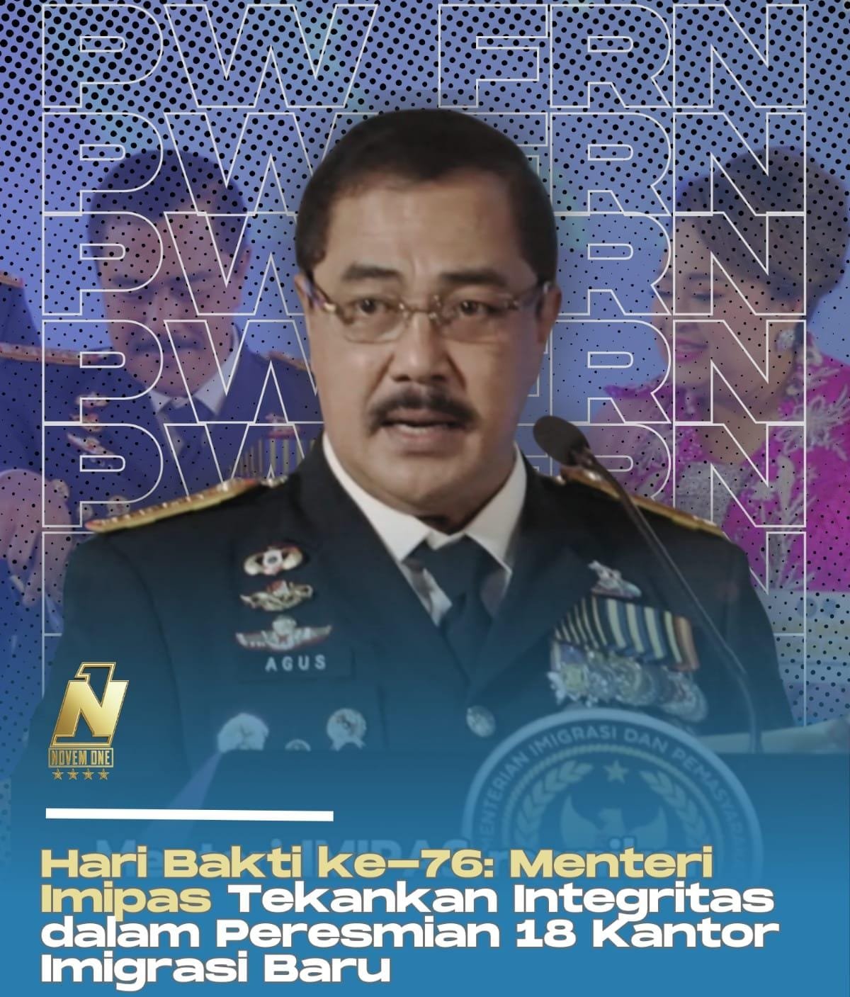 “76 tahun lalu, tepatnya tanggal 26 Januari 1950, Pemerintah Hindia-Belanda menyerahkan kedaulatan keimigrasian seutuhnya kepada Pemerintah Indonesia dengan terbentuknya Djawatan Imigrasi. Kini tanggal 26 Januari, kita peringati sebagai hari imigrasi, untuk merayakan perjuangan dan dedikasi insan imigrasi,” ujar Menteri Agus Andrianto.
