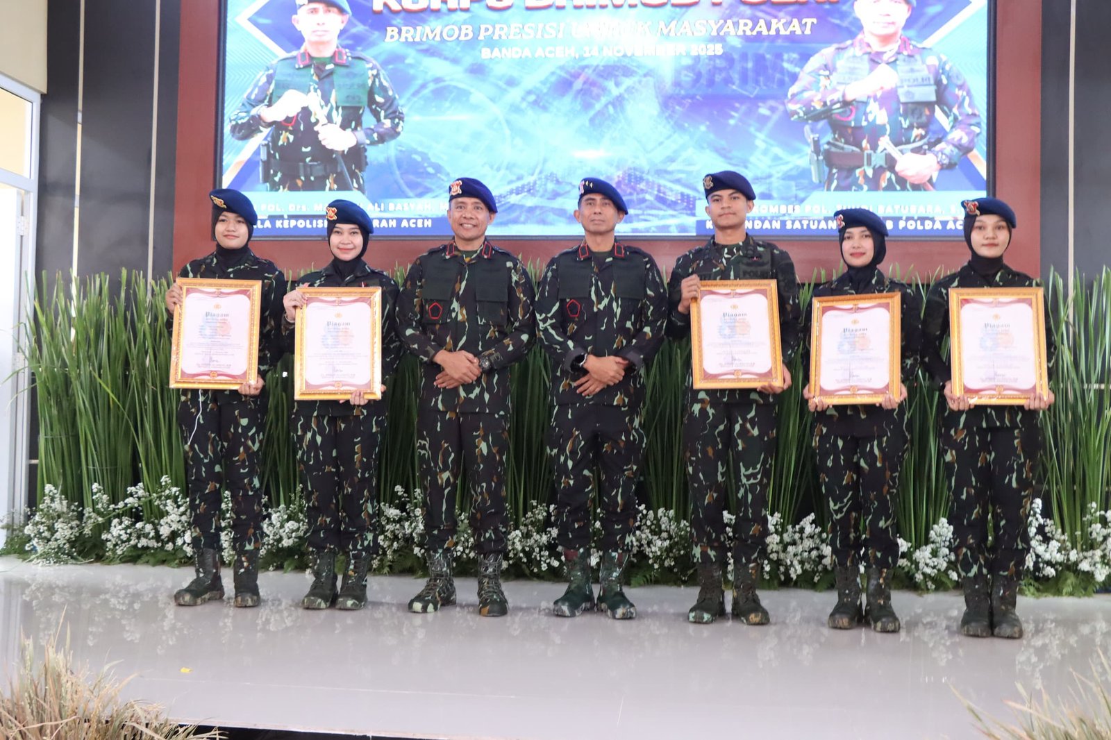Selain itu, diberikan pula penghargaan kepada personel Satbrimob berprestasi yang meraih peringkat keenam Challenge se-Brimob Nusantara, serta penyematan Pin Brimob Meutuah kepada personel yang dinilai memiliki dedikasi tinggi.
