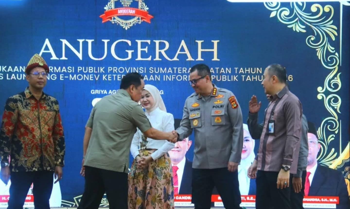 Palembang, radar91.com – Kabid Humas Polda Sumatera Selatan menghadiri acara penganugerahan Keterbukaan Informasi Publik (KIP) Provinsi Sumatera Selatan Tahun 2025 yang dirangkaikan dengan peluncuran aplikasi E-Monev Keterbukaan Informasi Publik. Kegiatan ini berlangsung khidmat di Griya Agung, Palembang, pada Jumat (13/2/2026).