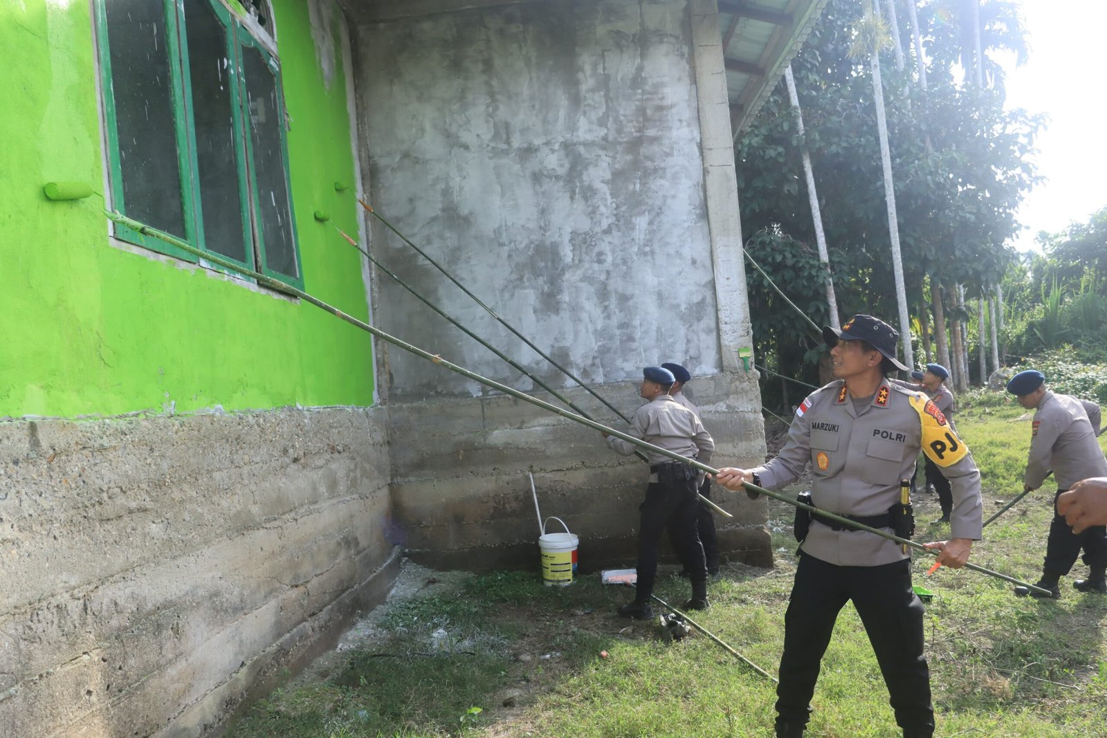 Dalam sambutannya, Irjen Pol. Marzuki Ali Basyah berinteraksi langsung dengan warga dan mendengarkan keluhan serta kebutuhan masyarakat pasca banjir.