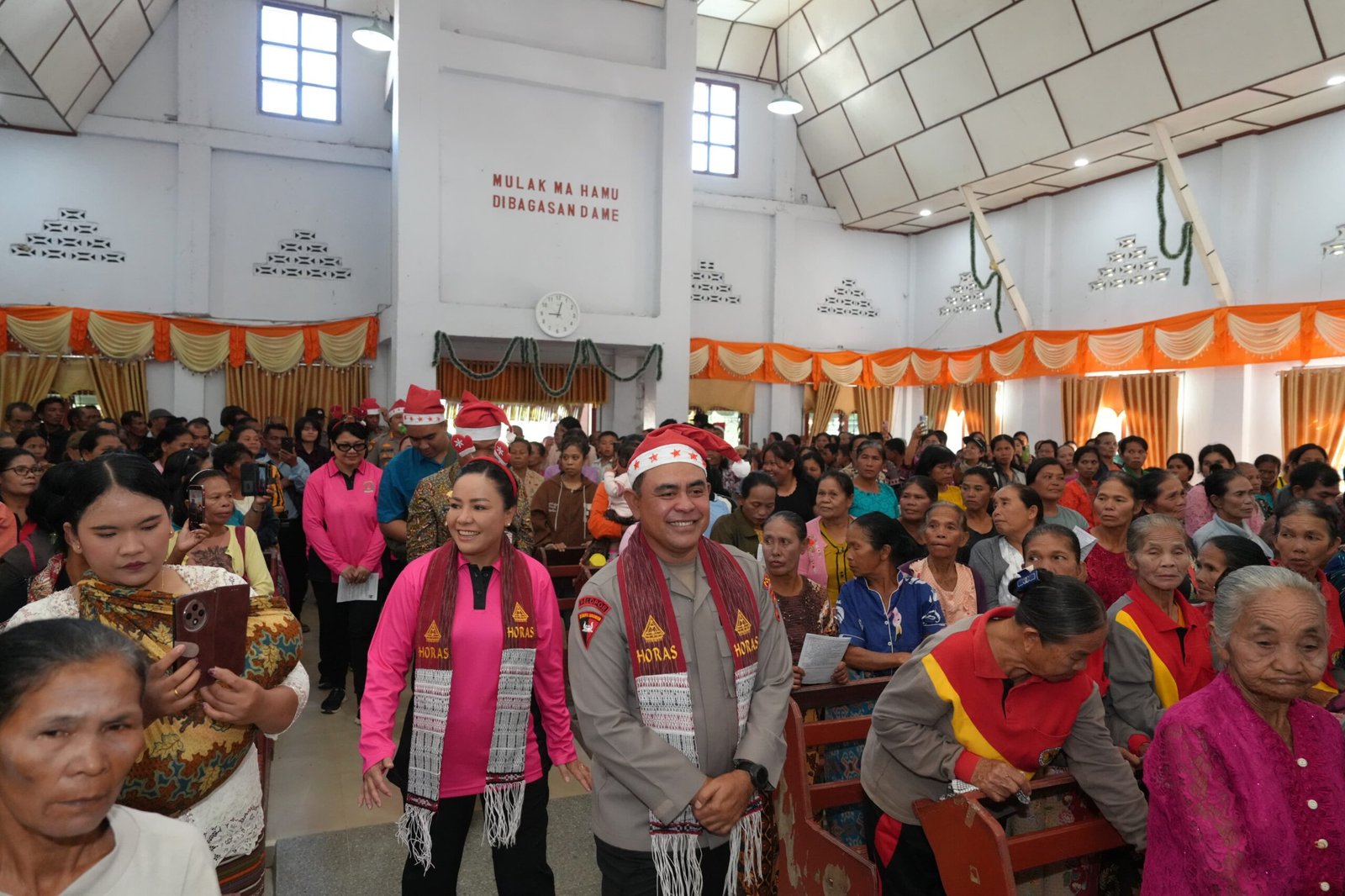 Ibadah Natal diikuti sekitar 800 warga masyarakat korban bencana banjir dan longsor, termasuk Bupati Humbang Hasundutan Dr. Oloan P. Nababan, S.H., M.H., jajaran Polda Sumut, Polres Humbang Hasundutan, Bhayangkari Daerah Sumut dan Cabang Humbang Hasundutan, tokoh agama, serta unsur pemerintah daerah.
