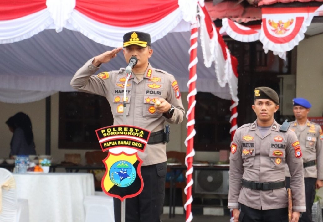 Kapolresta Sorong Kota Kombes Pol. Happy Perdana Yudianto, S.I.K., M.H. bertindak selaku Inspektur Upacara (Irup), memimpin langsung jalannya prosesi yang sarat makna tersebut. Sementara, tugas sebagai Komandan Upacara dipercayakan kepada IPDA Yendri Adi Putra Samudra, S.H.