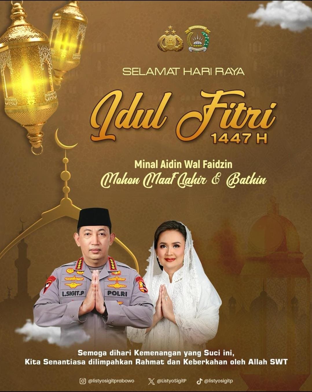 Jakarta, – Kapolri Jenderal Polisi Listyo Sigit Prabowo memberikan ucapan selamat Hari Raya Idul Fitri 1447 H kepada Ketua Umum Perkumpulan Wartawan (PW) Fast Respon Nusantara (FRN), Agus Flores, melalui pesan WhatsApp pada Kamis malam (19/3).