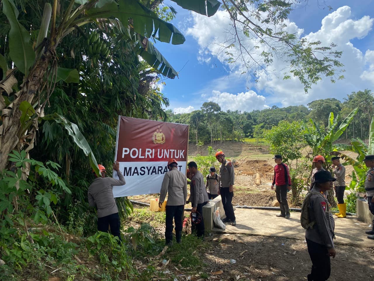 Dalam kegiatan tersebut, personel Brimob bergotong royong mengangkut kayu serta material dasar untuk membangun jembatan darurat. Jembatan ini sangat dibutuhkan masyarakat setempat karena menjadi akses utama penghubung antar desa yang sempat terputus akibat bencana.
