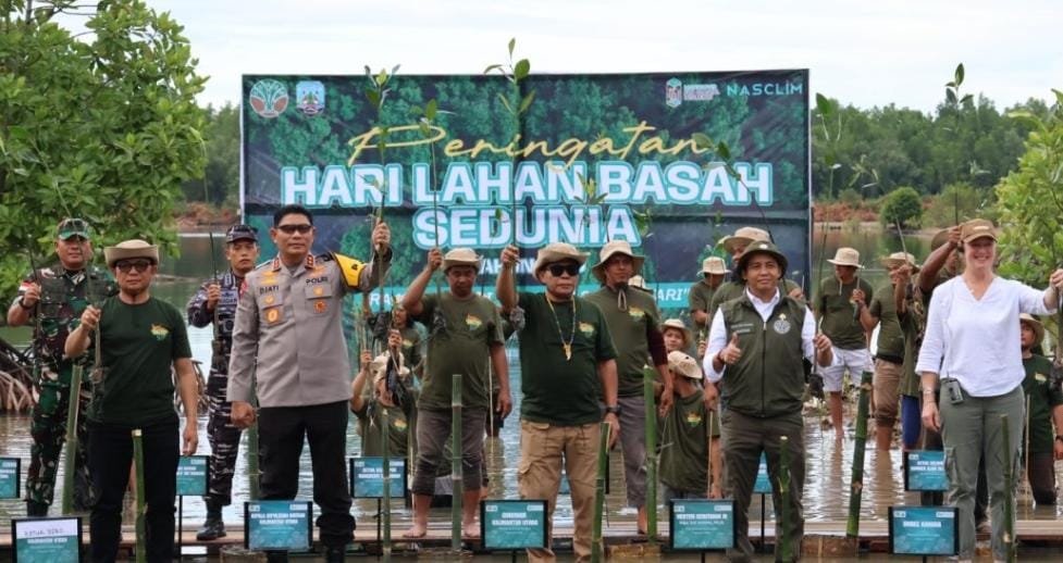 Bulungan, radar91.com – Kapolda Kaltara Irjen Pol Djati Wiyoto Abadhy, S.I.K., menghadiri kegiatan penanaman mangrove Dalam rangka memperingati Hari Lahan Basah Sedunia, Menteri Kehutanan Republik Indonesia Raja Juli Antoni, MA., Ph.D., memimpin langsung kegiatan penanaman mangrove di Desa Liagu, Kecamatan Sekatak, Kabupaten Bulungan, Sabtu (7/2/2026). Kegiatan ini menjadi bagian dari kunjungan kerja Menteri Kehutanan di Provinsi Kalimantan Utara, sekaligus menegaskan komitmen pemerintah terhadap rehabilitasi ekosistem pesisir.