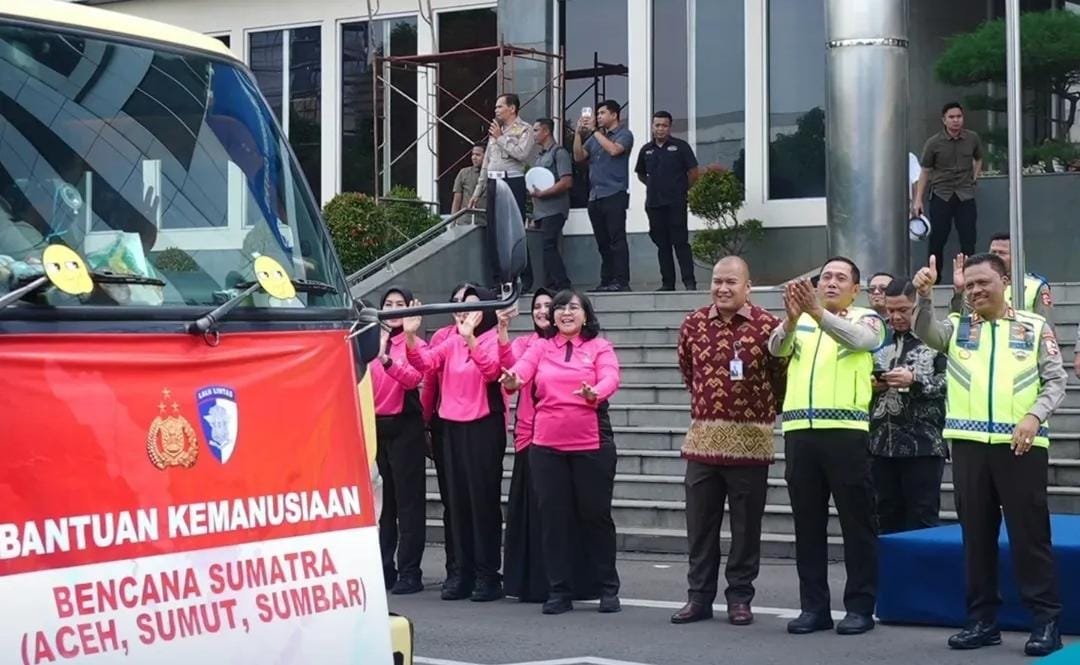 Sebanyak 25 unit mobil patroli dilepas untuk mendukung operasional kepolisian di daerah terdampak, dengan rincian 9 unit untuk Sumbar, 8 unit untuk Sumut, dan 8 unit untuk Aceh. Selain kendaraan, Korlantas juga mengirimkan 1.500 paket sembako dan bantuan tambahan berupa rendang dari warga Minang.