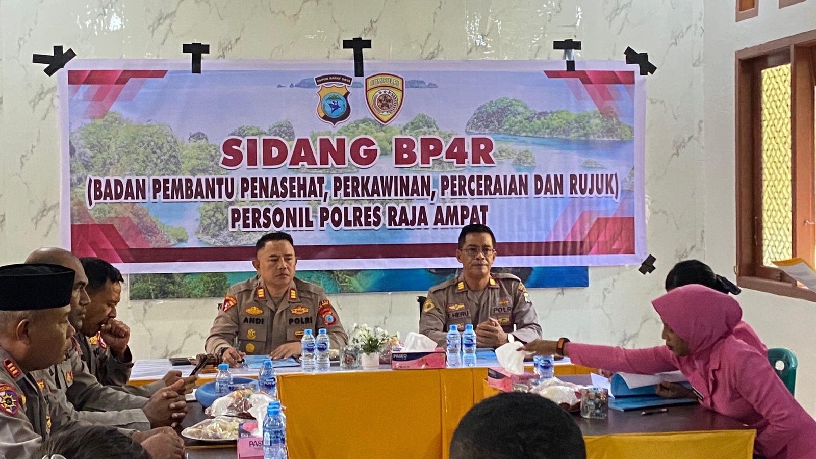 Raja Ampat, radar91.com – Kepolisian Resor (Polres) Raja Ampat melaksanakan Sidang Badan Pembantu, Penasehat, Pernikahan, Perceraian, dan Rujuk (BP4R) bagi dua pasangan personel di Ruang Data Polres Raja Ampat pada Senin (30/03/2026). Kegiatan yang dimulai pukul 10.00 WIT ini merupakan syarat wajib bagi anggota Polri sebelum melangsungkan pernikahan secara sah.