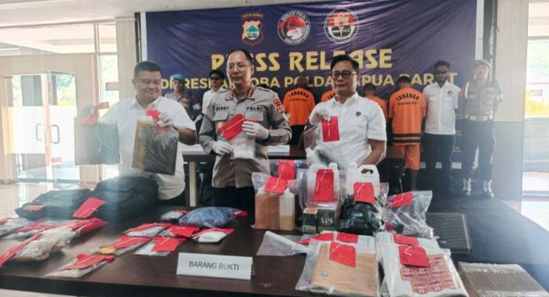 Kabid Humas Polda Papua Barat Kombes Pol. Ignatius Benny Ady Prabowo, S.H., S.I.K., M.Kom., didampingi Direktur Reserse Narkoba Kombes Pol Japerson Parningotan Sinaga, S.I.K., serta PS. Kanit 1 Ditresnarkoba Polda Papua Barat Iptu Lukas Rosihol, S.H., M.H., menjelaskan bahwa kasus pertama terjadi pada Minggu (31/8/2025). Tersangka R (41) diamankan di Bandara Rendani Manokwari dengan barang bukti sabu seberat 61,82 gram yang disembunyikan di dalam pakaian.