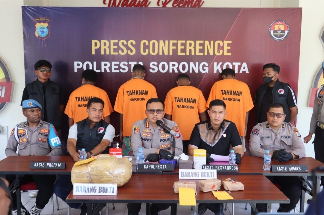 Keberhasilan ini dipaparkan langsung oleh Kapolresta Sorong Kota, Kombes Pol. Happy Perdana Yudianto, S.I.K., M.H., didampingi Kasat Resnarkoba AKP Rachmat Djakatara, S.Tr.K., S.I.K, M.Si., dan Kasihumas Ipda Didin Puji Sugiarto, S.H. dalam konferensi pers yang digelar di Mapolresta Sorong Kota, pada Jumat (4/7/2025) sore. “Kami berhasil mengungkap beberapa jaringan pemasok ganja yang masuk melalui jalur laut. Ini adalah bukti komitmen kami untuk memberantas peredaran narkotika di wilayah Sorong,” ujar Kombes Pol. Happy Perdana Yudianto.