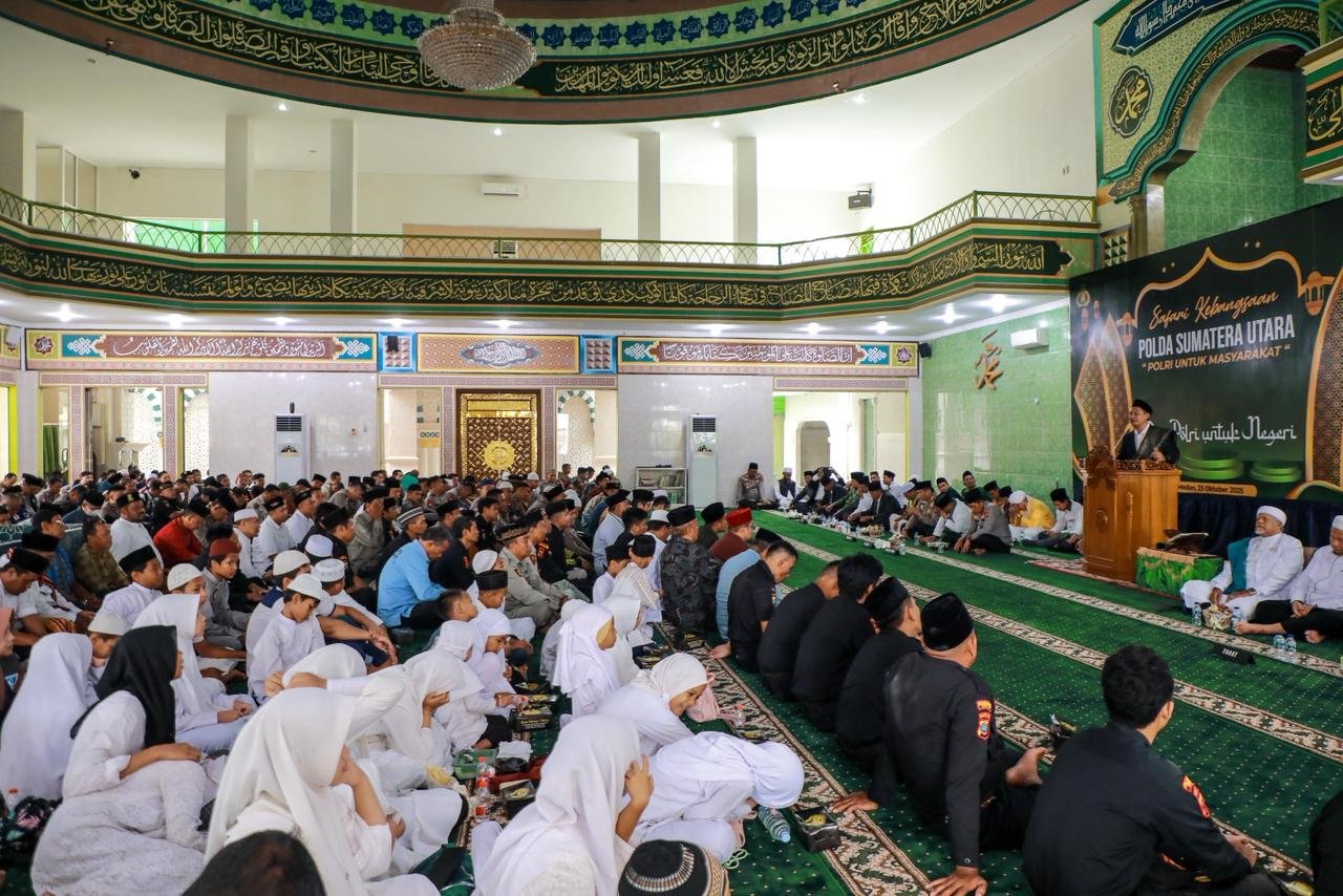 Medan, radar91.com — Wakapolda Sumatera Utara, Brigjen Pol. Rony Samtana Tarigan, S.I.K., M.T.C.P., mewakili Kapolda Sumut Irjen Pol. Whisnu Hermawan Februanto, S.I.K., M.H., menghadiri kegiatan Safari Kebangsaan Polda Sumut yang digelar di Masjid Al-Hidayah Polda Sumut pada Kamis (23/10/2025).
