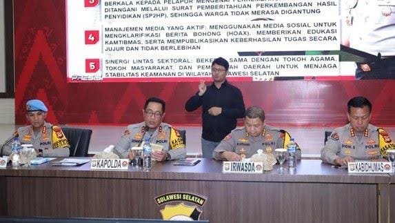 Menutup paparannya, Kapolda Sulsel menegaskan bahwa Polda Sulawesi Selatan telah berupaya maksimal dalam melaksanakan tugas pokok Polri, yakni memelihara kamtibmas, memberikan perlindungan, pengayoman, dan pelayanan kepada masyarakat, serta melakukan penegakan hukum secara objektif, transparan, dan akuntabel.