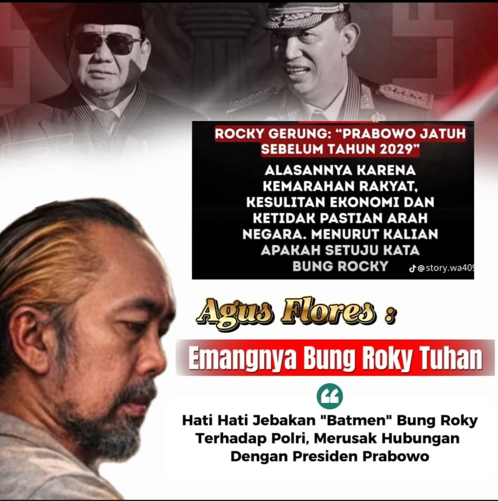 “Emangnya Bung Rocky Tuhan, bisa memastikan hal seperti itu? Jangan sampai pernyataan seperti ini justru memperkeruh hubungan antara Polri dan Presiden Prabowo,” tegas Agus Flores. Sabtu, (28/03/2926).
