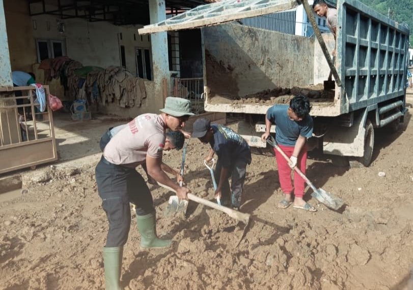 Kegiatan kemanusiaan ini dipimpin langsung oleh Danki-1 Penugasan AKP Januar Fazhari, S.H., dengan melibatkan personel yang terbagi dalam beberapa regu dan didukung peralatan kerja seperti cangkul, sekop, chainsaw, mesin air, hingga alat berat beko sorong.