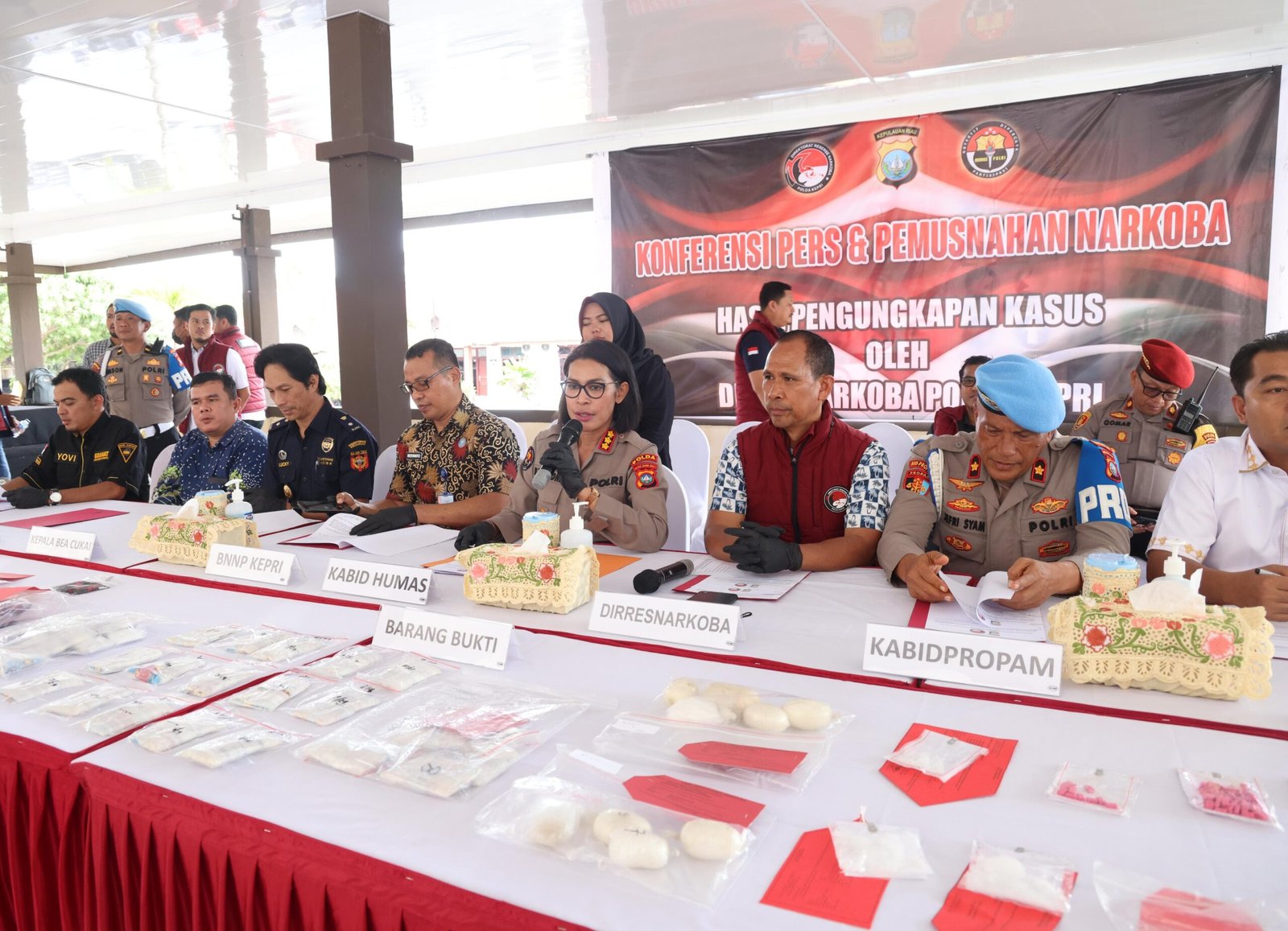 Hadir dalam kegiatan tersebut Kabid Humas Polda Kepri Kombes Pol. Dr. Nona Pricillia Ohei, S.I.K., S.H., M.H., Kabagbinops Polda Kepri, Kasubbid Provos Polda Kepri, perwakilan Kejati dan Kejari, BNNP, GRANAT Provinsi, Pegadaian, penasihat hukum, BPOM, Bea dan Cukai, serta insan pers.