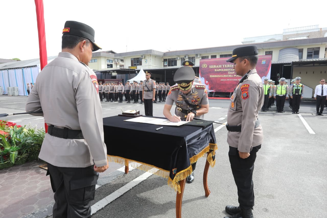 Sementara itu, jabatan Kapolrestabes Medan kini resmi diemban oleh Kombes Pol. Dr. Jean Calvijn Simanjuntak, S.I.K., M.H., yang sebelumnya menjabat sebagai Dirresnarkoba Polda Sumut. Sedangkan posisi Dirresnarkoba Polda Sumut kini diisi oleh Kombes Pol. Andy Arisandi, S.H., S.I.K., M.H., yang sebelumnya bertugas di Mabes Polri sebagai Penata Kebijakan Kapolri Madya Tk. III Sahli Kapolri.