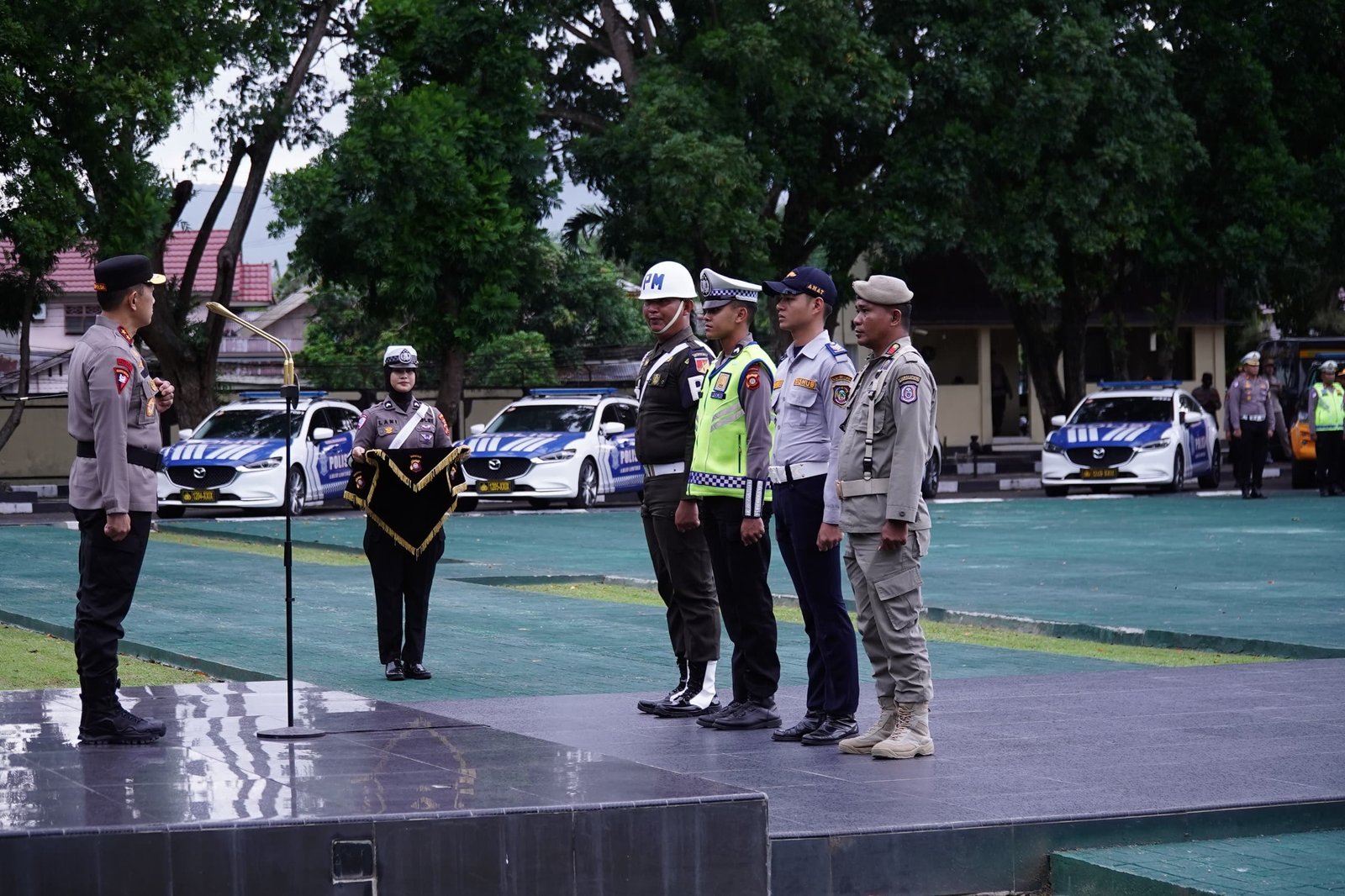 Apel gelar pasukan dipimpin langsung oleh Kapolda Gorontalo Irjen Pol. Widodo, S.I.K., M.H., serta diikuti oleh personel Polda Gorontalo yang terlibat dalam operasi. Kegiatan ini juga melibatkan unsur TNI, Basarnas, Satpol PP, Dinas Perhubungan, BPBD, Pemadam Kebakaran, serta Jasa Raharja sebagai bentuk sinergi lintas sektor dalam pengamanan momentum akhir tahun.