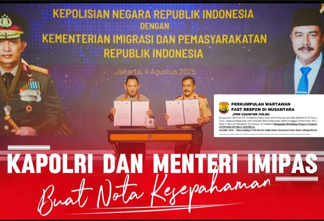 Nota kesepahaman tersebut tentang Sinergisitas Tugas dan Fungsi di Bidang Kepolisian, Keimigrasian dan Pemasyarakatan di Jakarta Pusat, Senin (4/8/2025). Penandatanganan tersebut dilaksanakan langsung oleh Kapolri Jenderal Pol Drs. Listyo Sigit Prabowo M.Si., dan Menteri Imipas Jenderal Polisi (Purn) Drs. Agus Andrianto S.H., M.H.