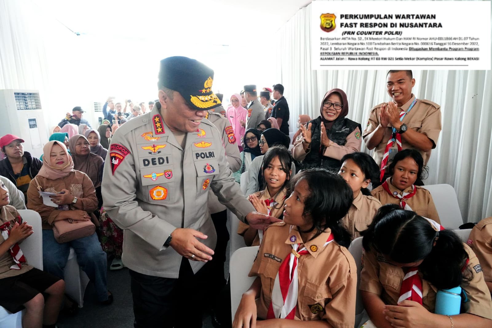 “Syukur alhamdulillah, hari ini kita bersama Dokkes Polri, SDM Polda Jabar, Polres, dan Pemkab Bogor dapat melaksanakan kegiatan bakti sosial, bakti kesehatan, sekaligus meninjau progres pembangunan SMA Kemala Taruna Bhayangkara,” ujar Komjen Pol. Dedi.