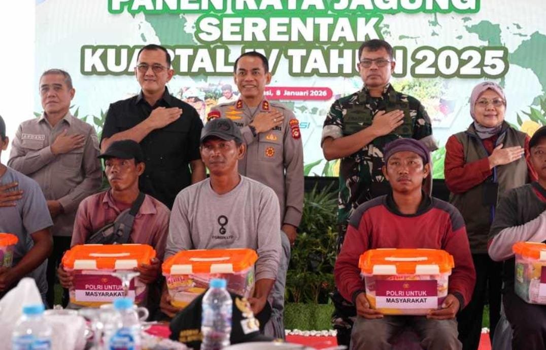 Ogan Ilir, rasar91.com – Kepolisian Daerah Sumatera Selatan kembali menunjukkan peran aktifnya dalam mendukung program strategis pemerintah di bidang ketahanan pangan nasional. Pada momentum Panen Raya Jagung Serentak Kuartal IV Tahun 2025, Kapolda Sumatera Selatan Irjen Pol. Andi Rian R. Djajadi, S.I.K., M.H., didampingi Kapolres Ogan Ilir AKBP Bagus Suryo Wibowo, S.I.K., menyalurkan bantuan sosial kepada kelompok tani jagung sebagai bentuk kepedulian nyata Polri terhadap kesejahteraan petani.